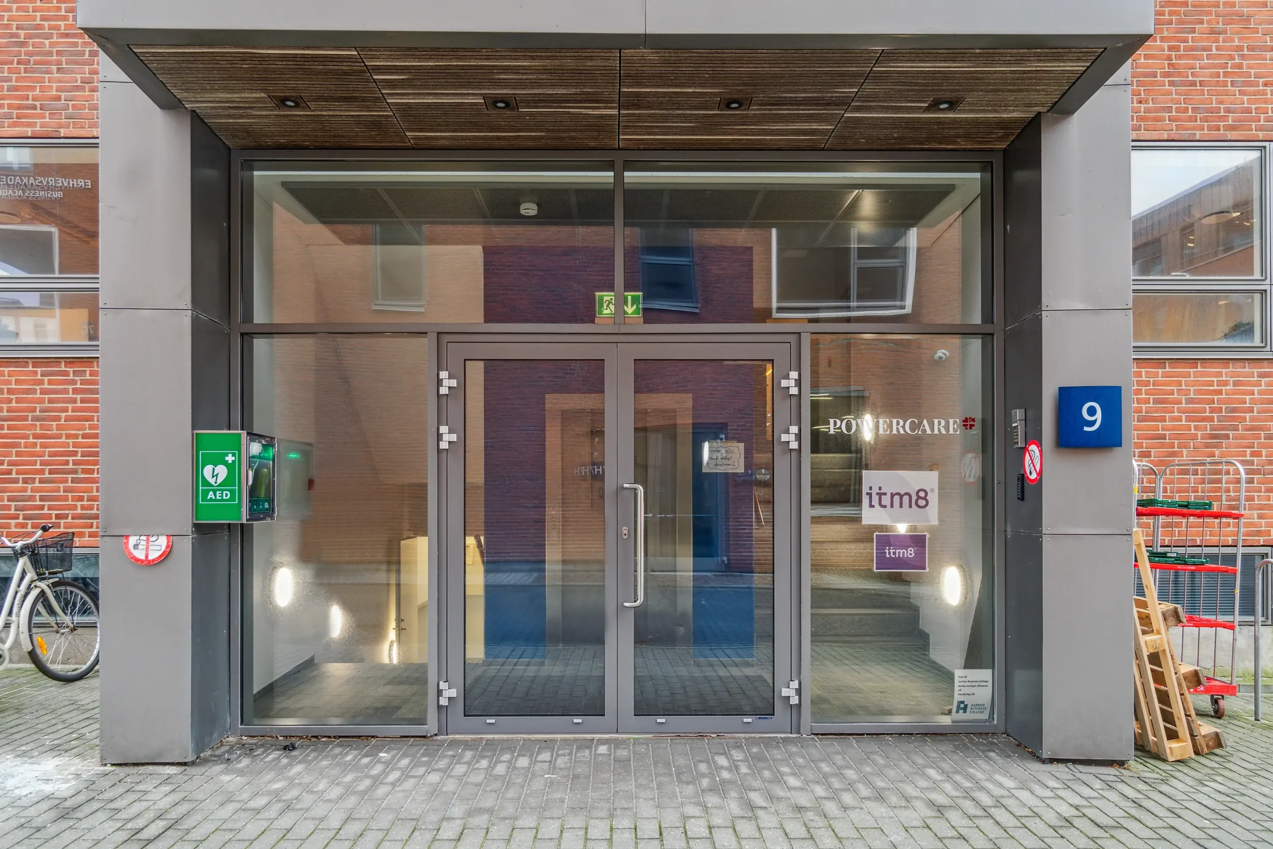 Nyere præsentabel bygning med elevator, placeret på 3. sal med panoramaudsigt over Aarhus og omegn. Nærmeste nabo er ARLA i deres smukke restaurerede bygninger samt Erhvervsakademiet. Både det livlige erhvervsliv og studenterlivet, gør området hipt og attraktivt at arbejde i.