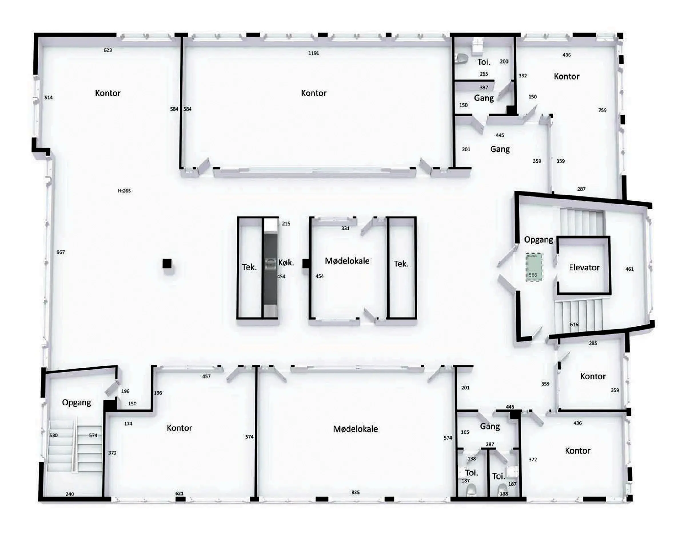 3. sal 660 m2 Aarhus S med elevator i nyere istandsat bygning er til leje